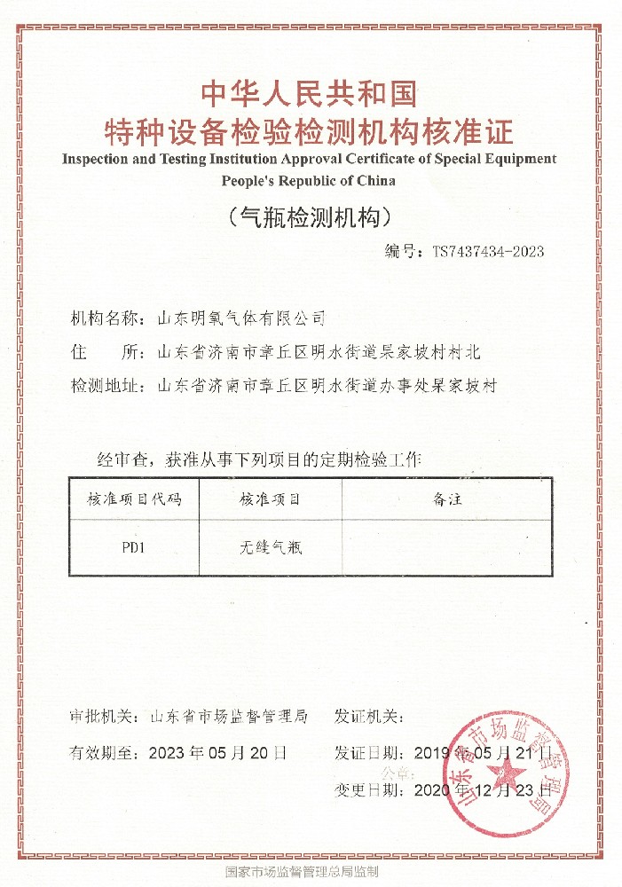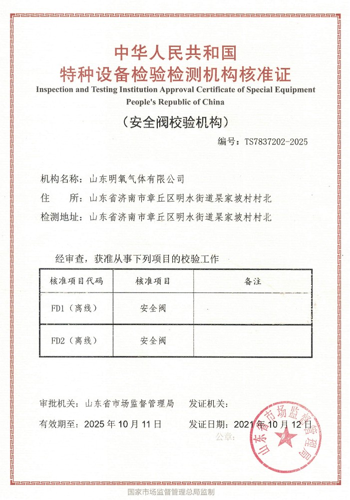 ??? 山東明氧氣體有限公司的前身為始建于1993年的章丘市明水氧氣廠,2020年12月企業(yè)由民營(yíng)獨(dú)資轉(zhuǎn)型升級(jí)為山東明氧氣體有限公司,企業(yè)進(jìn)入新的發(fā)展階段。公司位于山東省濟(jì)南市章丘區(qū)明水街道杲家坡村村北,占地面積4000平方米,注冊(cè)資金500萬(wàn)元,固定資產(chǎn)投資3000萬(wàn)元,主要經(jīng)營(yíng)項(xiàng)目為醫(yī)用氧氣、工業(yè)氧氣、氮?dú)狻⒏呒兊獨(dú)狻鍤狻⒏呒儦鍤狻⒏呒兒狻⒍趸肌⒒旌蠚怏w等各種工業(yè)氣體、高純氣體、混合氣體的充裝銷售、各類氣瓶的銷售、安全閥校驗(yàn)、鋼質(zhì)無(wú)縫氣瓶的檢驗(yàn)等。